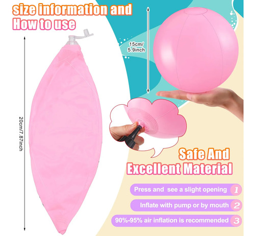 Material fiable: hecha de PVC de calidad, nuestra pelota de playa es ligera y no se rompe fácilmente, sólida y útil, inodora y segura para que la sostengas en tus manos Por favor, mantén las pelotas alejadas de objetos puntiagudos al inflar
