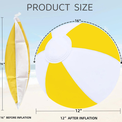 Fácil de usar: pelotas de playa de 16 pulgadas antes de inflar, 12 pulgadas después de inflar. Pelotas de playa inflables perfectas para el mejor juguete para la playa, el juego de arena y agua o para la piscina.