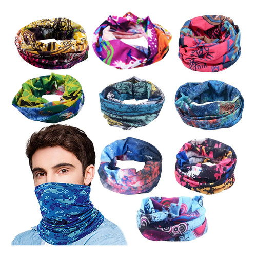 Patrones múltiples y formas de uso: puede usarlo como bufanda, pañuelo para el cuello, muñequera, diadema, pasamontañas, foulard, diadema, sahariane, gorra, priate, con patrón de 9 colores, puede usarlo en cualquier situación que necesite.