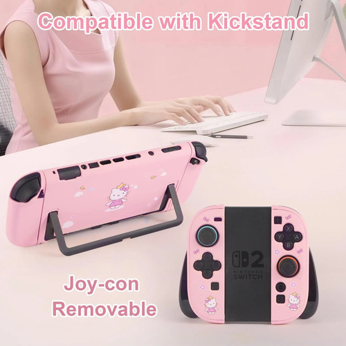 COMFOR DOCKABLE COVER CASE – Dockable and Detachable, the pink cover case can be attached to the switch 2 2025 and be docked at the same time. Ergonomically-designed Protective Cover Case makes playing more comfortable, the feel of the Switch 2 in your hands is enhanced. It has the kickstand for standing. Making it easy to play various games. Its the perfect balance of flexibility and ridigity to make it protective and comfortable while fitting very well