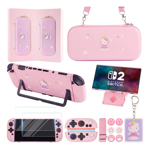11 IN 1 ACCESSORIES BUNDLE FOR NINTENDO SWITCH 2 2025 – The Cute Accessories Kit for Nintendo Switch 2 2025 includes 1x Carrying Case, 1x Dockable Cover Case, 2x Tempered Glass Screen Protector, 1x Adjustable kawaii Stand, 6 Thumb Grips, 1x Cartoon Keychain. If youre looking for a kawaii cute pink Switch 2 accessories kit for you or your kids as a birthday or Christmas gift – this is the perfect gift and saves your time on searching varieties accessories