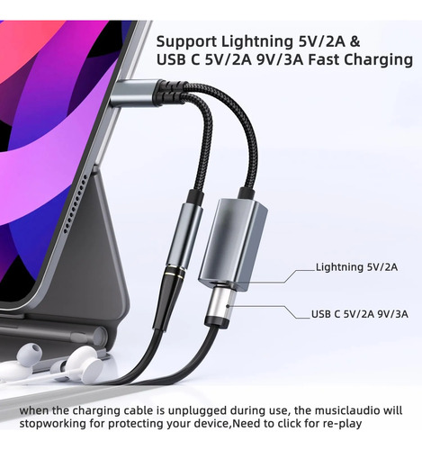 Vcddom 3 en 1 USB C a 3,5 mm Adaptador Audifonos Jack y Cargador