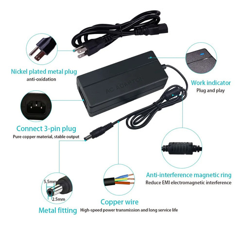 Cuatro protecciones y garantías de seguridad: protección contra sobretensión, protección contra sobrecorriente, protección contra cortocircuitos, protección contra sobrecalentamiento envío después de la prueba de envejecimiento de carga. Productos 100% nuevos, adoptando una solución de placa base de chip, calidad y rendimiento más estables. Enchufe niquelado de cobre, conector de entrada de seguridad estándar, buena conductividad, resistente al desgaste y no se deforma, prueba de enchufe y desenchufe, fuerte resistencia a la corrosión