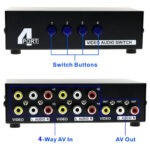 Canal 4 entrada AV a 1 salida AV. Conecta 4 dispositivos de video a 1 televisor. Compatible con dispositivos AV.