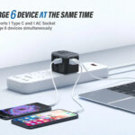 DiseƱo todo en uno 4 puertos USB, 1 USB tipo C y 1 enchufe de CA para cargar 6 dispositivos simultƔneamente.