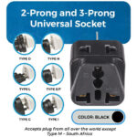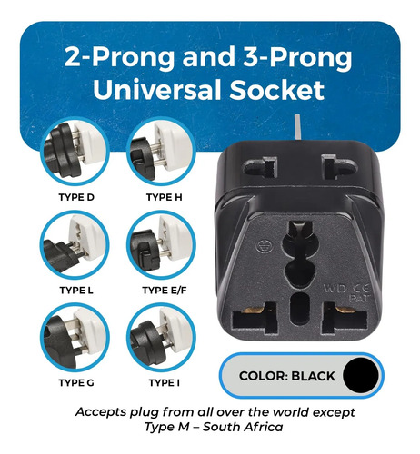 Entrada universal: El adaptador de enchufe de alimentación OREI Australia acepta enchufes de todos los países (2 clavijas y 3 clavijas), excepto el tipo M (Sudáfrica). Este adaptador de corriente de China es compacto y ligero, por lo que es ideal para viajar.