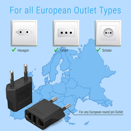 Perfecto para viajes europeos: ¡Mantente alimentado en cualquier lugar de Europa Este adaptador de enchufe Unidapt tipo C te permite conectar fácilmente dispositivos estadounidenses en más de 30 países, incluyendo Francia, Italia, España, Alemania, Grecia, Portugal y más. Compacto, fiable y esencial para cada viajero.