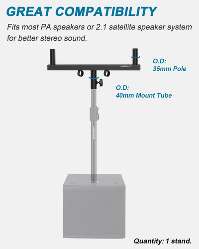 Con poste estándar de 35 mm de 1 3/8 pulgadas, se adapta a la mayoría de altavoces como gabinetes de altavoces PA de 6 o 8 o 10 pulgadas o 12 o 15 pulgadas.
