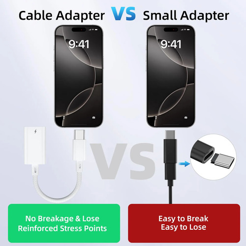Portátil y fácil de usar: con un tamaño compacto y portátil de solo 11 cm/4.3 pulgadas, este adaptador Lightning a USB C es ligero y fácil de llevar. Es ideal para usar en casa, oficina, viajes, escuela o sobre la marcha