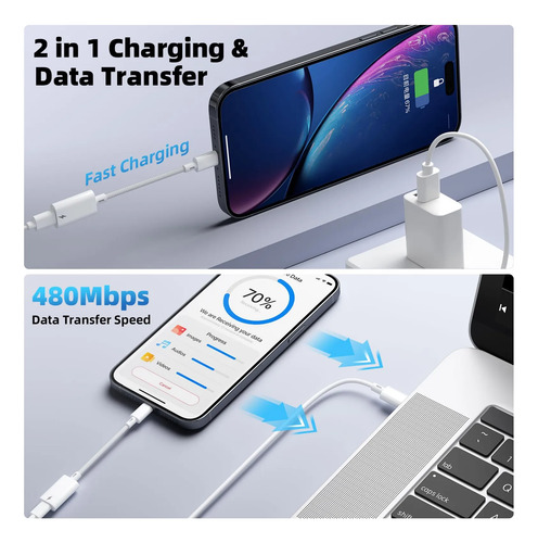 Soporta carga y sincronización de datos: el adaptador Lightning a USB C admite carga y la velocidad de transferencia de datos es de hasta 480 Mbps el adaptador de cable USB C a Lightning tiene una resistencia integrada de 56 K para una carga más segura no requiere instalación, simplemente conecta y listo