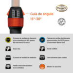 Á : Con una innovadora guía de ángulo ajustable de 15o a 30o, este sistema proporciona un control preciso para diversos cuchillos y herramientas, garantizando el ángulo correcto para cada hoja y mejorando la eficiencia del afilado y la retención del filo.