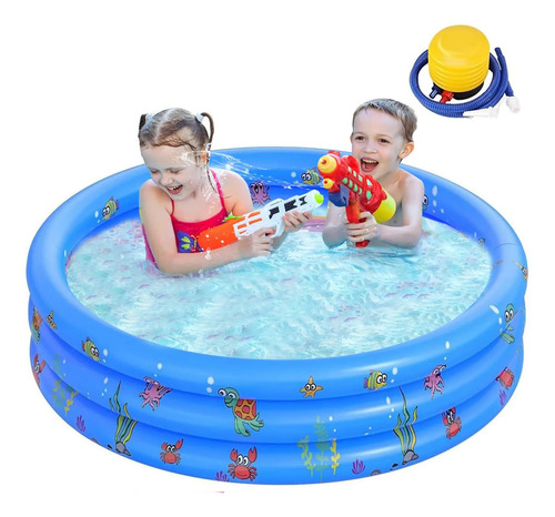 Material de PVC duradero y apto para niñosAlberca inflable para niños hecha de material de PVC superior, para niños tiene un fuerte grosor y resistencia al desgaste, no se rompe ni gotea fácilmente. Los ingredientes del producto han pasado la certificación EN-71, que es confiable e inofensiva para la salud de los niños. Simplemente disfruta de la diversión interminable de juegos acuáticos.