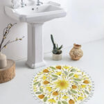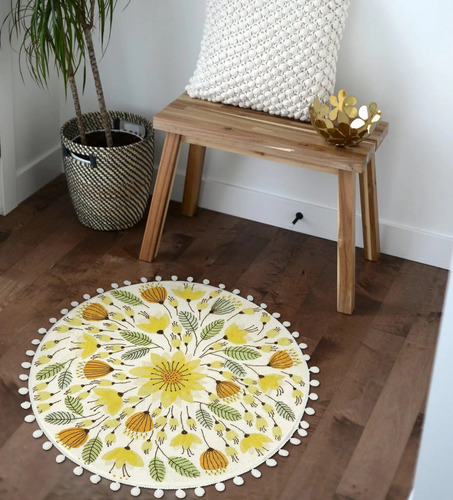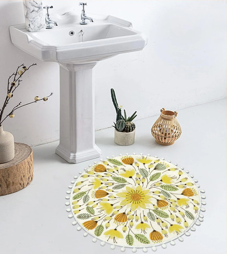Uphome – Alfombra redonda de 2 pies con pompones, flecos florales, lavable, antideslizante, circular, para baño, cuarto de bebé, dormitorio, amarillo con blancos