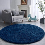 FJZFING – Alfombra redonda azul marino, ultra suave, moderna de felpa de 5 x 5 pulgadas, para recámara de niños, alfombra circular esponjosa para cuarto de bebé, alfombra antideslizante para
