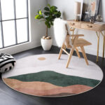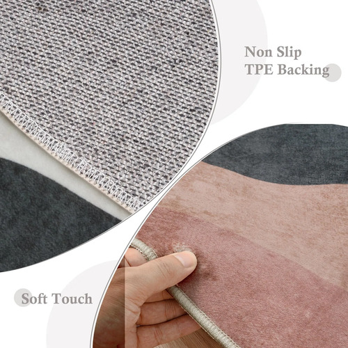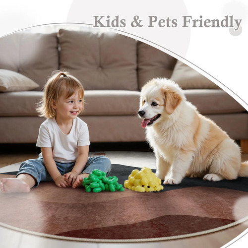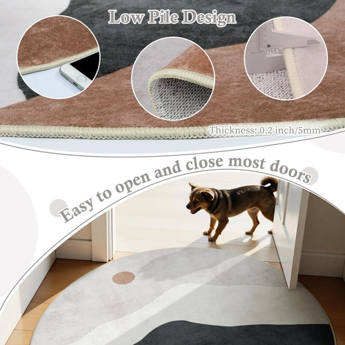 Parte trasera de goma antideslizante: la parte trasera antideslizante proporciona un buen agarre para que la alfombrilla no se mueva fácilmente y no dañe tu piso. Esta alfombra redonda es lo suficientemente estable para el hogar y el uso diario con niños y mascotas