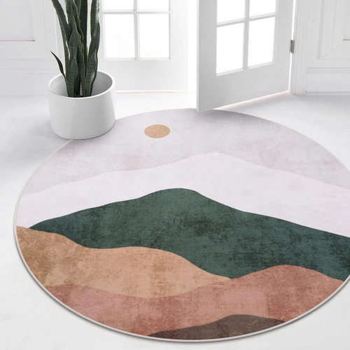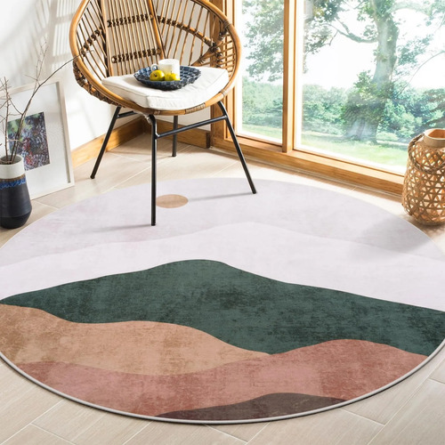 Alfombra redonda abstracta de 4 pies, suave, lavable, antideslizante, para habitación de niños, alfombra circular de lana sintética de pelo bajo, para entrada, recámara, cuarto de bebé, sala