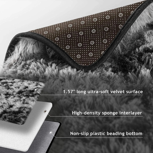 Suave y CĆ”lido La altura de pelo extra grueso de 4 cm de nuestra alfombra proporciona una lujosa comodidad de hundimiento. Relaje los pies en la acogedora alfombra, mantĆ©ngalos calientes en el clima frĆo. Todas las alfombras de Ć”rea estĆ”n hechas de materiales 100% no tóxicos, que tienen una excelente resistencia a la decoloración y son amigables con la piel.
