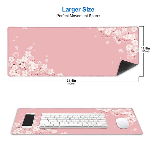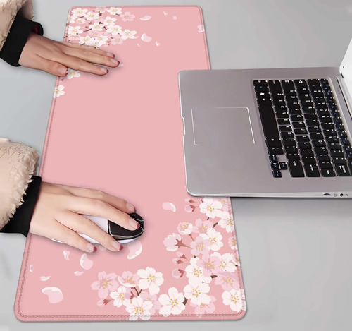 IMAYONDIA – Alfombrilla de escritorio japonesa rosa con diseño de flor de cerezo grande para juegos, base de goma antideslizante para mujeres, alfombrilla de escritorio para el trabajo, juego, oficina
