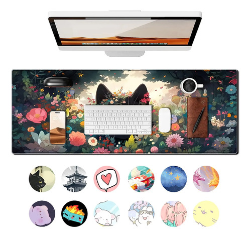Alfombrilla de mouse grande personalizada La alfombrilla de escritorio completa mide 31.5 x 11.8 pulgadas (80 x 30 cm), con 3 mm de grosor, lo suficientemente grande como para acomodar tu computadora, laptop, teclado y otros artículos de escritorio, y aún dejar mucho espacio para que tu mouse se mueva por todas partes. Diseñado con ilustración brillante y antidecoloración que añade personalidad a tu escritorio, combina perfectamente con cualquier estilo de habitación, oficina, hogar y escritorio.