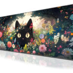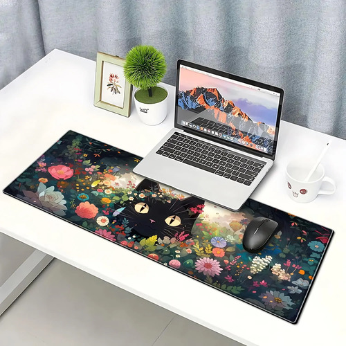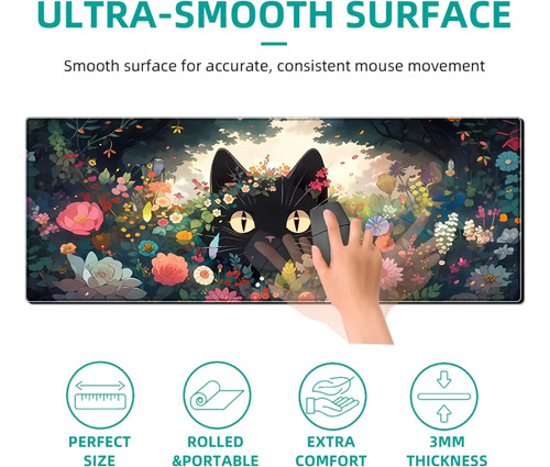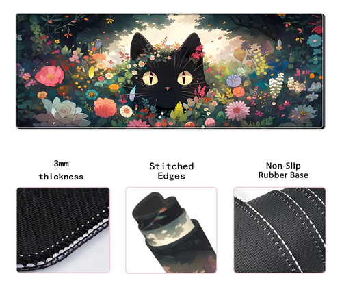 Alfombrilla de mouse para juegos de gato negro, alfombrilla de computadora grande de 80.01 x 29.97 cm, base de goma antideslizante extendida con bordes cosidos para computadora, oficina en casa