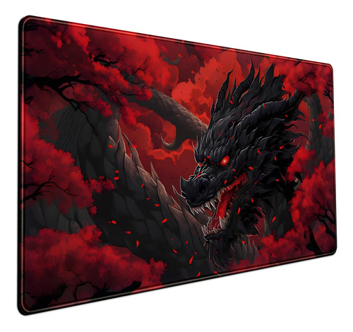 Huge Dragon – Alfombrilla de mouse grande, color rojo y negro, teclado completo grande y alfombrilla de mouse con bordes cosidos, antideslizante, divertida almohadilla de computadora, 31.5 x 40.1 cm.