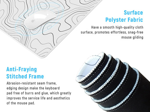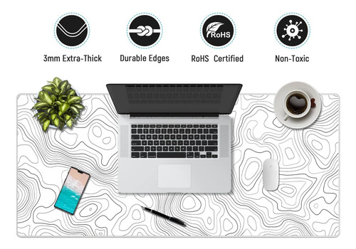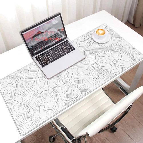 Alfombrilla De Mouse Grande Topográfica Xxl Para Juegos Blanco Diseño Impreso