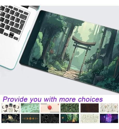 Alfombrilla de mouse para juegos de bosque verde japonés, tapete de escritorio de árbol de anime, bosque, tamaño XL, grande, bonita estética, decoración de escritorio de oficina, laptop, computadora,