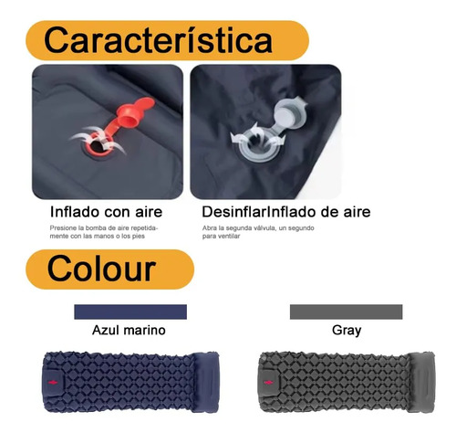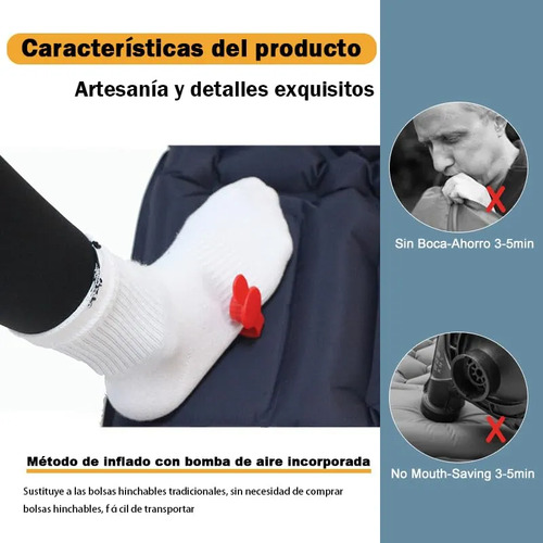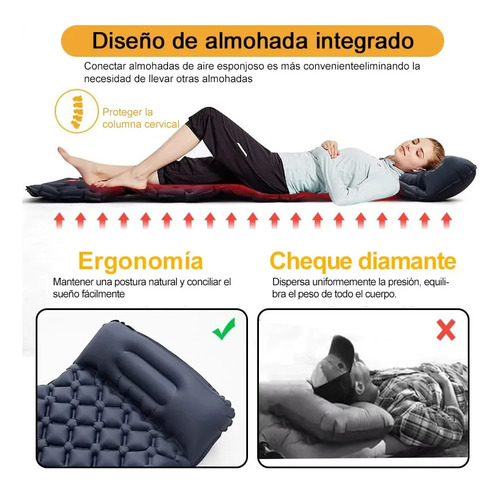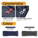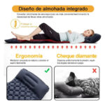 Diseño Integrado con Almohada Incluye una almohada inflable que se ajusta a la curva de la cabeza y el cuello, ofreciendo un soporte equilibrado para todo el cuerpo. Este diseño promueve la relajación de los hombros y el cuello, ayudando a un descanso reparador.
