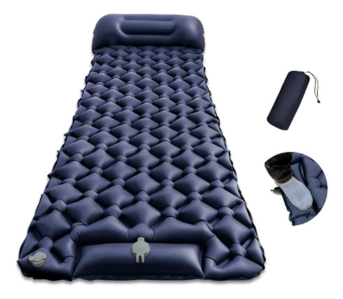 Almohadilla Inflable Ultraligera para Dormir, Bomba de Pie Incorporada Portátil + Almohada con Bolsa de Almacenamiento para Camping al Aire Libre, Mochilero y Senderismo, Individual (Azul Tibetano)