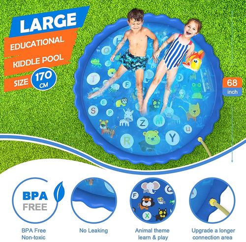 Juguetes de agua perfectos para exteriores Esta piscina con aspersor es adecuada para regalos de cumpleaños, juguetes para el césped de la playa al aire libre y fiestas en la piscina de verano. la mejor opción para mantener a los niños frescos y emocionados en los calurosos días de verano. Perfecto para batallas acuáticas de verano, parques acuáticos, fiestas acuáticas, piscinas, playas y actividades al aire libre.