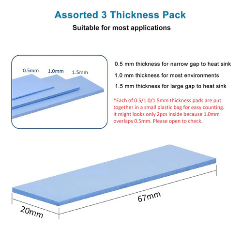 Fácil de instalar, puede seleccionar el grosor más adecuado y cortar los tamaños requeridos. Gran reemplazo para pasta de grasa compuesta de disipador de calor tradicional.