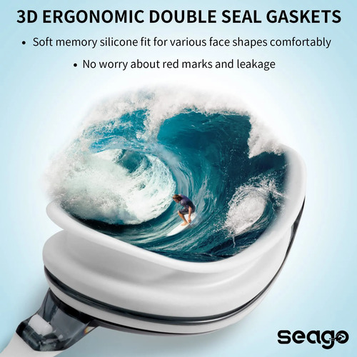 Silicona suave sin fugas: experimenta la máxima comodidad con las anteojos de natación Seago para adultos, hechas de silicona suave sin látex e inodora. Nuestro diseño de doble sellado no solo alivia la presión sobre la piel, sino que también proporciona una protección excepcional contra los ojos de mapache y el cloro. La junta de silicona de memoria suave y el diseño ergonómico garantizan un ajuste cómodo en diversas formas de cara, ofreciendo una comodidad sin igual durante tu natación.