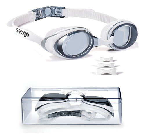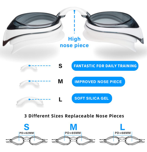 Piezas intercambiables para la nariz y ajuste cómodo: nuestras anteojos de natación Seago cuentan con 3 puentes de nariz curvados intercambiables hechos de material ABS duradero y flexible, asegurando un ajuste perfecto para hombres, mujeres y jóvenes. Di adiós a las marcas rojas y las molestias ya que nuestro diseño versátil se adapta a varias