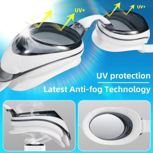 anteojos de natación con visión corta y protección UV antivaho para adultos, hombres, mujeres, jóvenes, lentes planas sin fugas