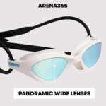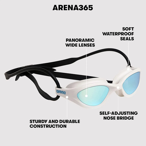 Arena anteojos de natación 365, lentes antivaho, anteojos para natación con lentes anchos, protección UV, puente nasal autoajustable,Blanco (lente espejo),M