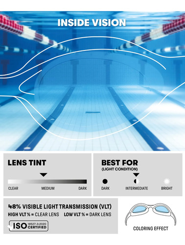 Diseño hidrodinámico con un perfil más pequeño para adaptarse a una cara más pequeña y sellos de silicona hipoalergénicos suaves que mantienen el agua fuera y proporcionan la máxima comodidad, por lo que es una gran opción para los nadadores jóvenes
