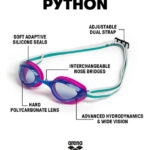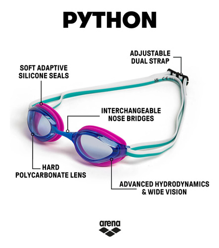 ARENA – anteojos de natación unisex de Python Racing para hombres y mujeres, antivaho, sin fugas, máxima comodidad, doble correa, lente espejo/sin espejo