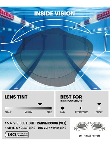 Instrucciones de cuidado del producto : Desliza suavemente las lentes interiores cinco veces con la punta de tu dedo mientras las gafas están en el agua para reactivar el antiempañamiento deslizante. Asegúrate de que no haya suciedad en las lentes mientras lo haces. Repite este proceso cada vez que las lentes se empañen para disfrutar de una visión clara durante más tiempo.