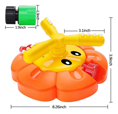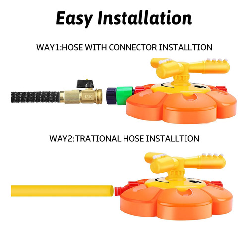 Fit U.S.A Garden Hose — These kids sprinklers are made of durable materials for outdoor activities use. And we provide an extra hose connector for your water spinning toys. Our toys connector will fit normal garden hose in US.