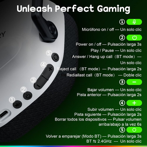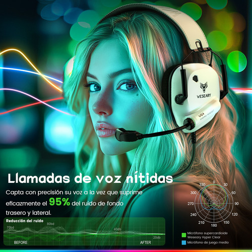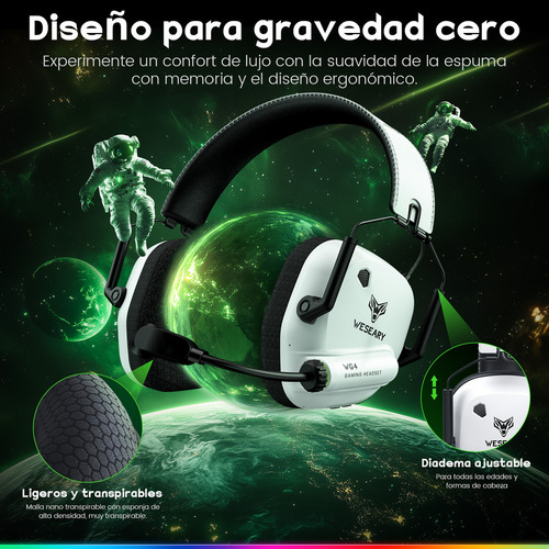 Auriculares Inalámbricos Para Juegos Compatibles Con Ps5, Pc, Ps4, Mac Y Switch, Con Un Adaptador Usb De 2,4 Ghz De Baja… Blanco
