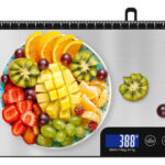 Panel Grande y Pantalla LCD: Tamaño del panel: 22,8 x 16 cm, el tamaño adecuado puede superar a una báscula pequeña y barata porque tiene una plataforma suficiente para pesar alimentos, adecuada para casi cualquier artículo que desee pesar, como sandías grandes. La escala digital se muestra en la gran pantalla LCD incorporada, cuando cambia las unidades, la pantalla digital es muy fácil de leer, obtendrá una medición correcta