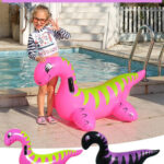 Dinosaurio Piscina Hinchable, Balsa Flotante Playa – Balsa Flotante Diversión en Verano para Niños y Adultos