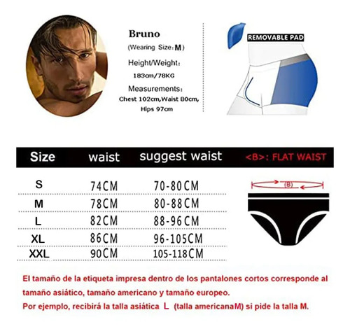 Aviso: Visite nuestra tabla de tallas en la página del producto antes de realizar el pedido. La talla impresa en la etiqueta del interior de los pantalones cortos corresponde a la talla europea, americana y asiática. Por ejemplo, si pide la talla M, recibirá la talla EU M USA M Asia L.