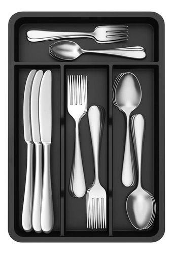 Lifewit Bandeja para Cubiertos, Organizador de Cubiertos de Cocina, Soporte de Plástico, Organizador de Cajones on 4 Compartimentos, Divisor para Cucharas, Tenedores, Cuchillos y Vajilla, Negro
