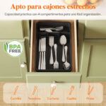 Almacenamiento Organizado: Con sus cuatro compartimentos, este cubertero para cajón de cocina es perfecto para clasificar y guardar tus cubiertos como cuchillos, tenedores y cucharas, facilitando el acceso a cada utensilio cuando lo necesites