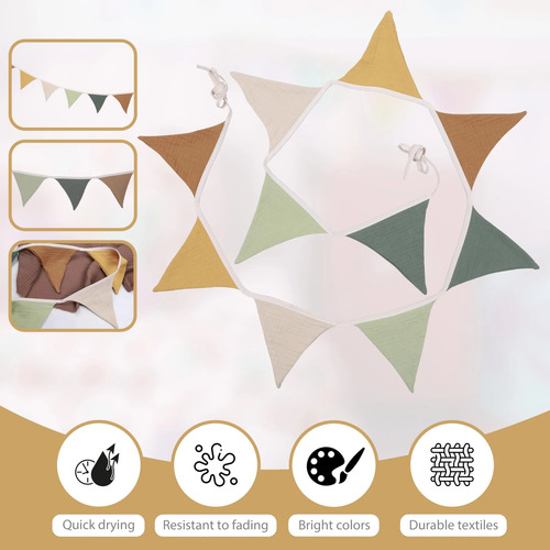 Productos y servicios: estas banderas son una manera fácil de añadir un toque festivo a tu celebración y crear recuerdos inolvidables para ti y tus invitados. Si tienes alguna pregunta sobre la decoración de la bandera triangular de color verde salvia antes o después de la compra, siempre puedes ponerte en contacto con nosotros en línea, nuestro servicio al cliente en línea las 24 horas estará feliz de servirte.