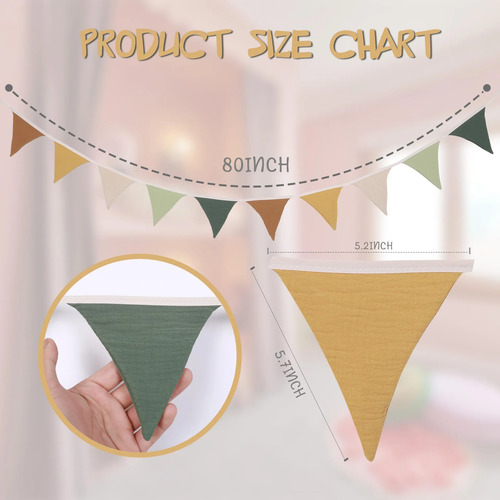 Paquete y tamaño de la bandera verde salvia: el producto contiene 1 tira de decoraciones de bandera triangular, cada tira mide aproximadamente 78.74 pulgadas de largo, además de 24 pulgadas en ambos lados de la cuerda para un fácil atado, las banderas triangulares son de 6.3 pulgadas de ancho por 6.3 pulgadas de largo, 12 banderas por tira, vibrantes, suficientes para satisfacer tus necesidades decorativas en la mayoría de lugares. es.