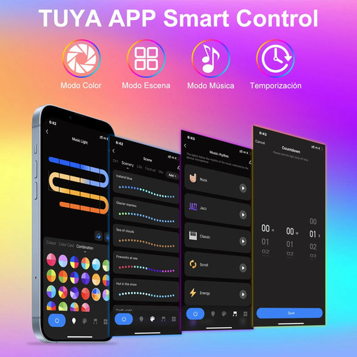 Barras Led Inteligente 30cm Rgb Control Por App Y Voz Color De La Luz