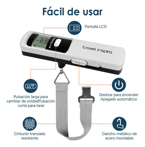 travel inspira Báscula de Equipaje Sin Pilas, Báscula Digital Portátil de Mano Para Viajar, 110 lb/50kg