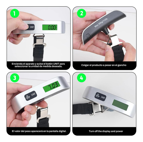Alta precisión y multifunciónEsta Bascula para Maletas Portatil con Gancho te brinda una Alta Precisión Báscula Colgante Digital para evitar cargos extras por — Bascula para Maletas Portatil cuenta con una correa de nylon resistente o un gancho de acero inoxidable, lo que la convierte en un imprescindible en tu lista de travel essentials.